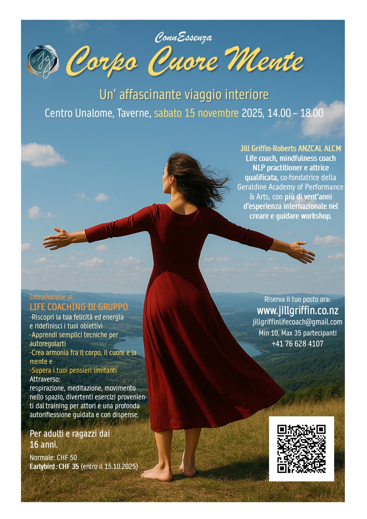 Ho viaggiato in oltre 30 paesi, ampliando i miei orizzonti e la mia comprensione di altre culture e stili di vita. Prima di formarmi come Life Coach, il mio background professionale si è concentrato sulle arti performative, sull'insegnamento di teatro e lingue e sull'organizzazione di eventi. Ho oltre vent'anni di esperienza nell'insegnamento e nel coaching a persone di tutte le età e abilità (dai 4 agli 80+ anni), con un'attenzione particolare per molti anni agli adolescenti.